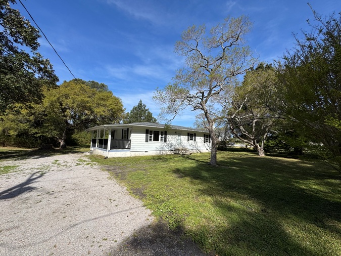Located on a half-acre lot on McCabe Road, this home offers a renovated interior and a prime location near the Brandywine Country Club. The interior features wood laminate flooring throughout and an open-concept living and kitchen area that benefits from plenty of natural light. In addition to the two bedrooms, a bonus room provides flexible space for an office or guest room. The property also has a new roof installed in 2024, a private well and a three bedroom septic tank on-site. Outside, the front yard is framed by picturesque trees; the home also features a covered porch and a detached shed for extra storage. Situated just minutes from the water and local beaches, this property is a versatile find. It stands as a solid investment opportunity or a functional place to call home on the Crystal Coast. $249,000.00